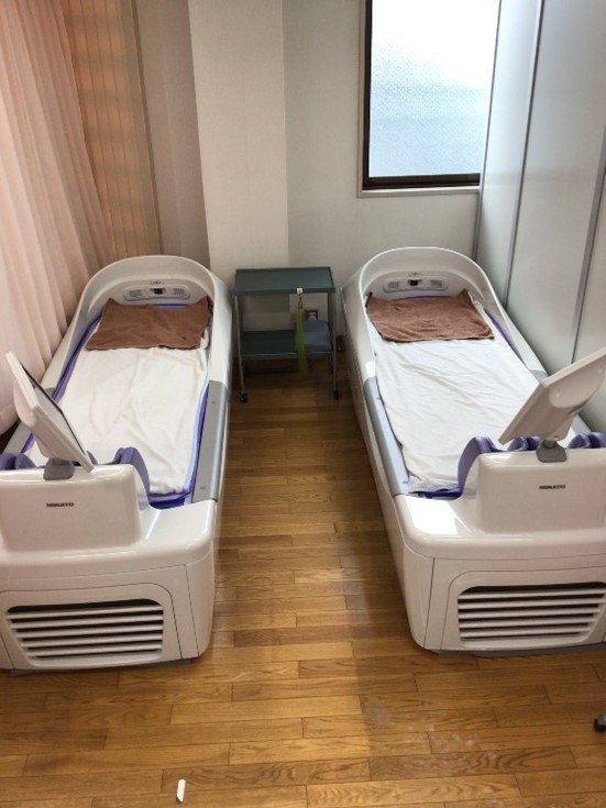 | 適応と効果 | 広範囲の慢性的な筋緊張、交通事故による受傷などに適応があります。 水圧刺激を利用したマッサージベッドです。身体全体のリラクゼーション効果が期待できます。 |