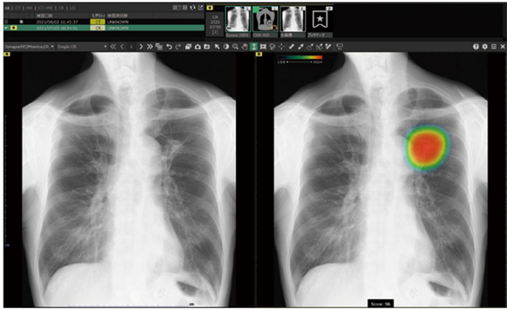 また当クリニックでは、胸部レントゲンの読影にAIでサポートする機器(富士フィルム社 CXR-AID)を導入しました。CXR-AIDは、胸部X線画像を自動解析し、病変の存在が疑われる領域を検出・マーキング・見落とし防止を支援するシステムです。医療AI技術を適切に活用し、より良い医療の提供を目指してまいります。