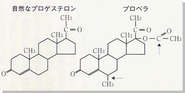 他方、合成ホルモンはナチュラルホルモンの一部の化学分子の分子構造を変えているもので、ホルモン様作用は示すが、一方では人体にとっては異物であり、副作用を起こす原因となります。