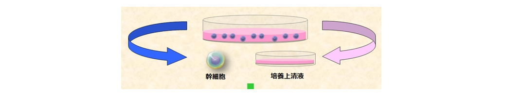 • 培養上清中のエクソソームによる作用:がん細胞の増殖抑制・転移抑制の可能性、免疫調節、老化制御など
