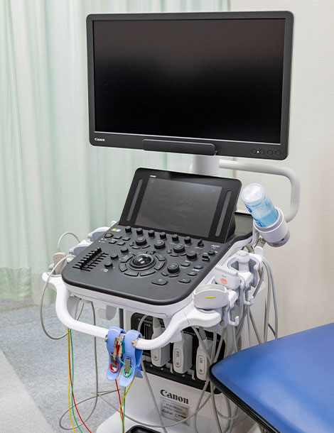 最新の超音波(エコー)を用いて、心臓、肝臓、腎臓、胆のう、膵臓などの内臓や、頸動脈(血管)の状態をリアルタイムで観察します。