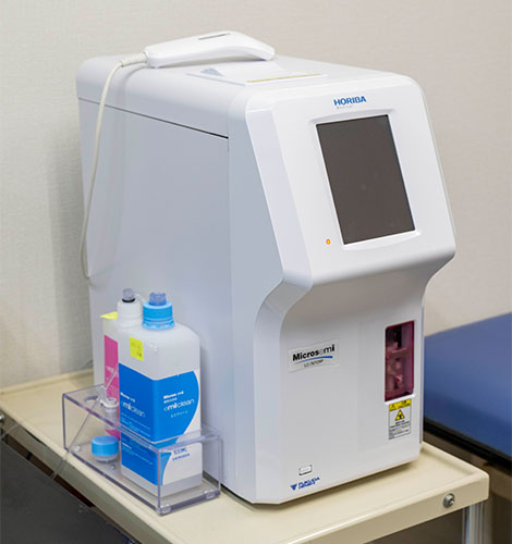 少量の採血で、白血球数やCRP(炎症反応)を約5分で測定します。