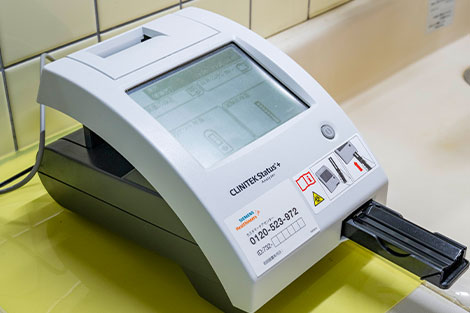 尿中のタンパクや糖、潜血を自動分析。腎機能の低下や糖尿病の初期兆候、尿路感染症の早期発見に努めます。