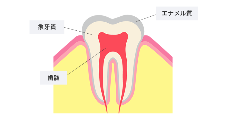 虫歯の痛みは、エナメル質や象牙質を破壊しながら侵入してきた虫歯菌が歯髄に刺激を与え生じるのです。そのため歯に痛みを感じる症状は、エナメル質と象牙質を溶かして歯髄まで虫歯菌が侵入した状態、つまり虫歯が進行してしまったと考えられます。