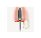 インプラント治療では、歯を失った部位に人工の歯(人口歯根)を埋め込み、その上に周囲の歯に合った歯を作成します。