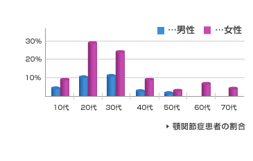 近年、顎関節症は増加傾向にあり、それも若い女性など若年層に特に増えています。