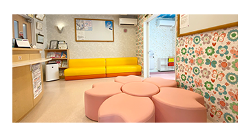 桜をモチーフにした椅子が特徴的な、明るく清潔感のある待合室です。本や雑誌もご用意しておりますのでどうぞご自由にご覧ください。